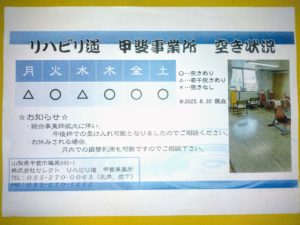 比較的スムーズにご利用可能な日が、数日ございますので、リハビリが必要な方・在宅で悩み事がある方・筋力をつけて生活を送りたい方等々、ご相談頂ければと思います!