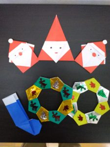 さて、リハビリ道甲斐事業所では、とても手の器用な利用者様がいらっしゃいます!!スタッフは、「花より団子」がそろっておりますが、残念ながら手先は…言葉に出来ず…なので、カワイイ折り紙は利用者様に依頼しております(笑)そして、こんなにカワイイ、そして季節を感じることのできる一品が出来上がりました♪我が家では、子供達がサンタクロースにお手紙を書き始めました!! 今年も我が家始め、皆様のお宅にサンタさんが来てくれることを願うばかりです☆